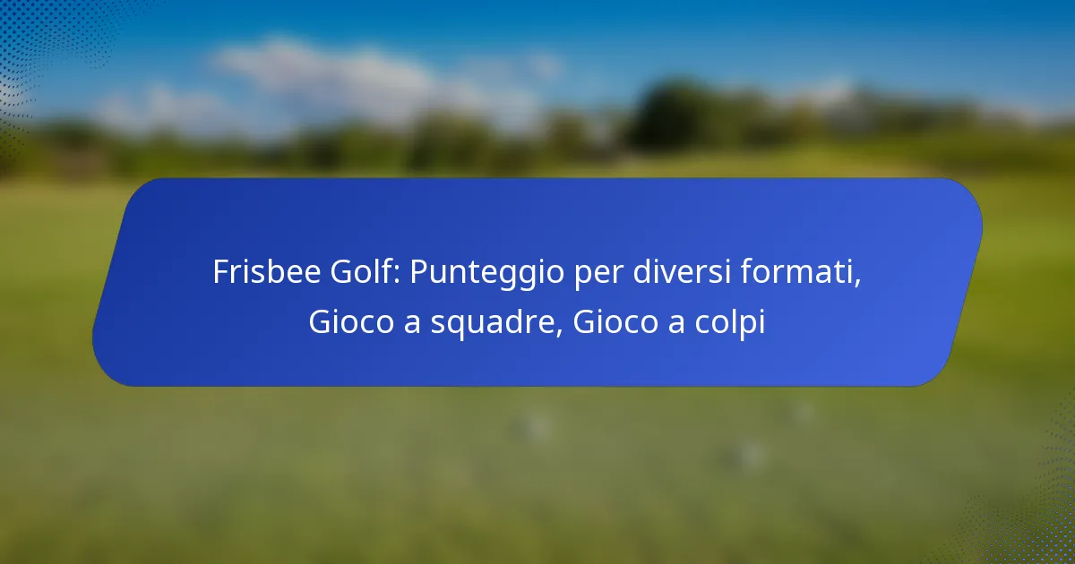 I principali metodi di punteggio nel disc golf includono lo stroke play e il match play, ognuno dei quali offre un modo unico per monitorare le prestazioni. I giocatori possono anche esplorare formati alternativi che aggiungono varietà al gioco.